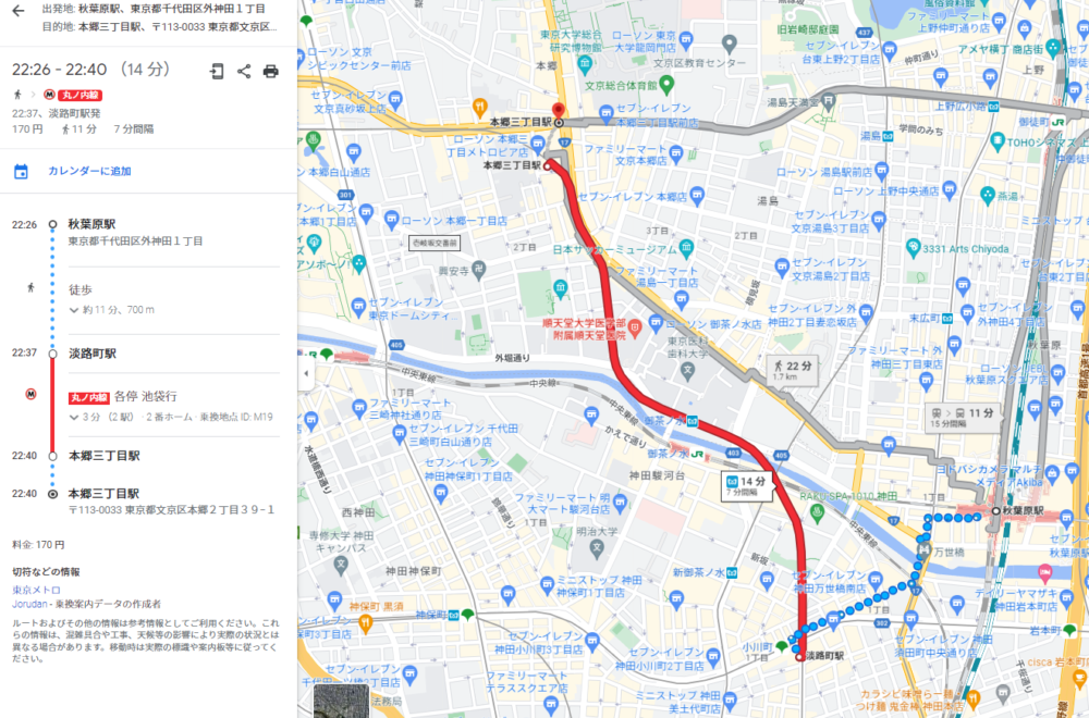 秋葉原から本郷三丁目駅へ